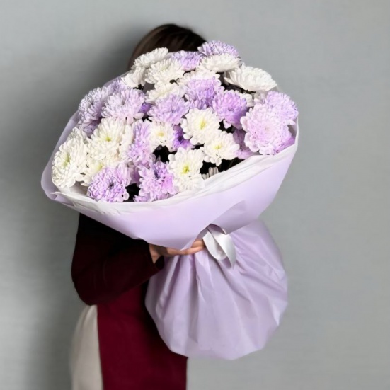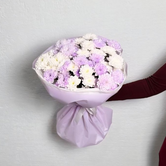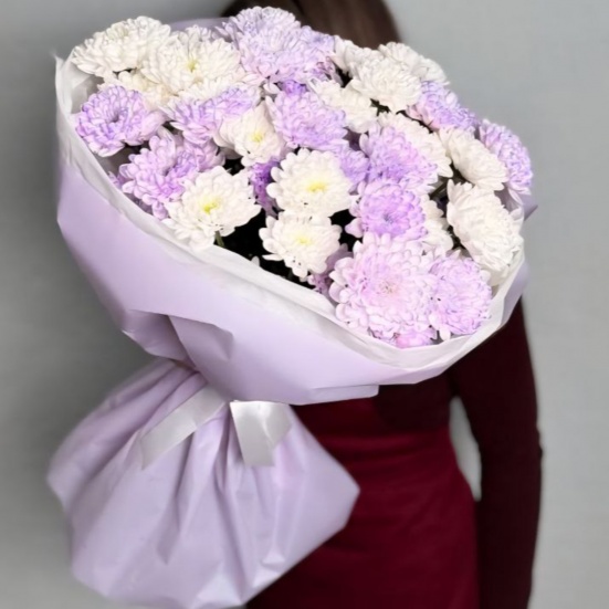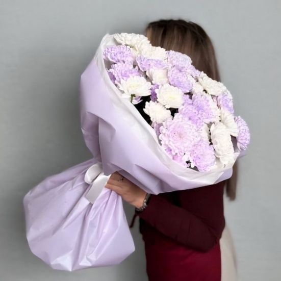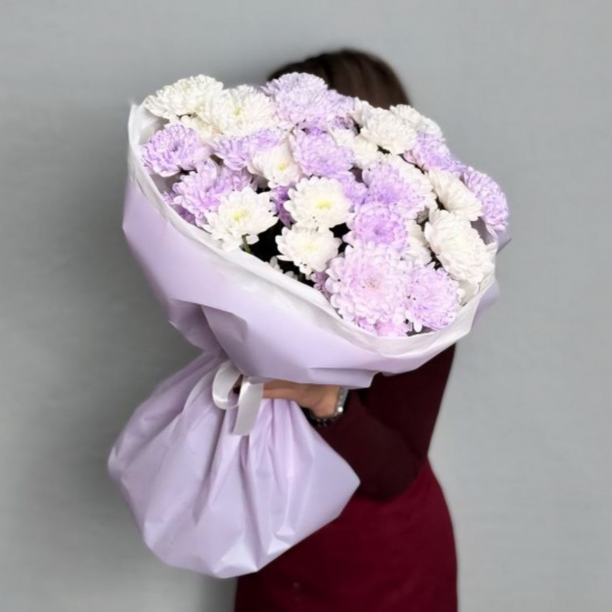 Букет из 9 фиолетовых и белых хризантем в Коврове