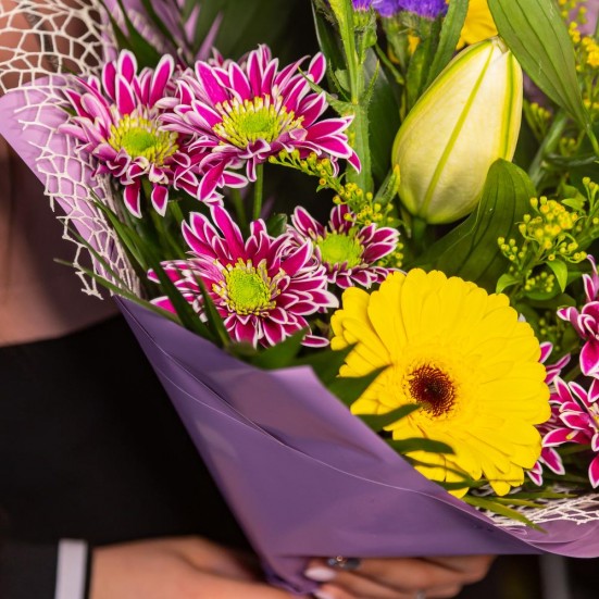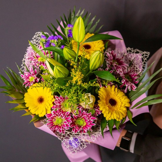 Букет с розами, хризантемами, лилиями, герберами в Коврове